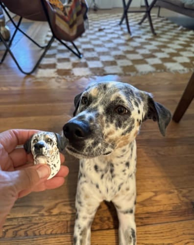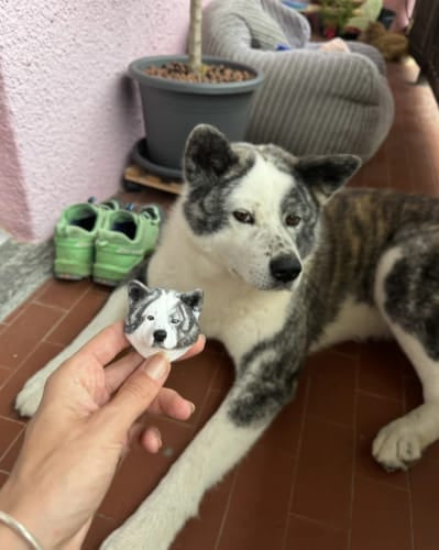 Nerokas lahjaidea! Ostin sen sisareni syntymäpäivälahjaksi hänen koiransa kanssa. Se saapui kauniissa pakkauksessa, täydellinen lahjaan. Samankaltaisuus on hämmästyttävä, näyttää oikean koiran miniatyyriltä.